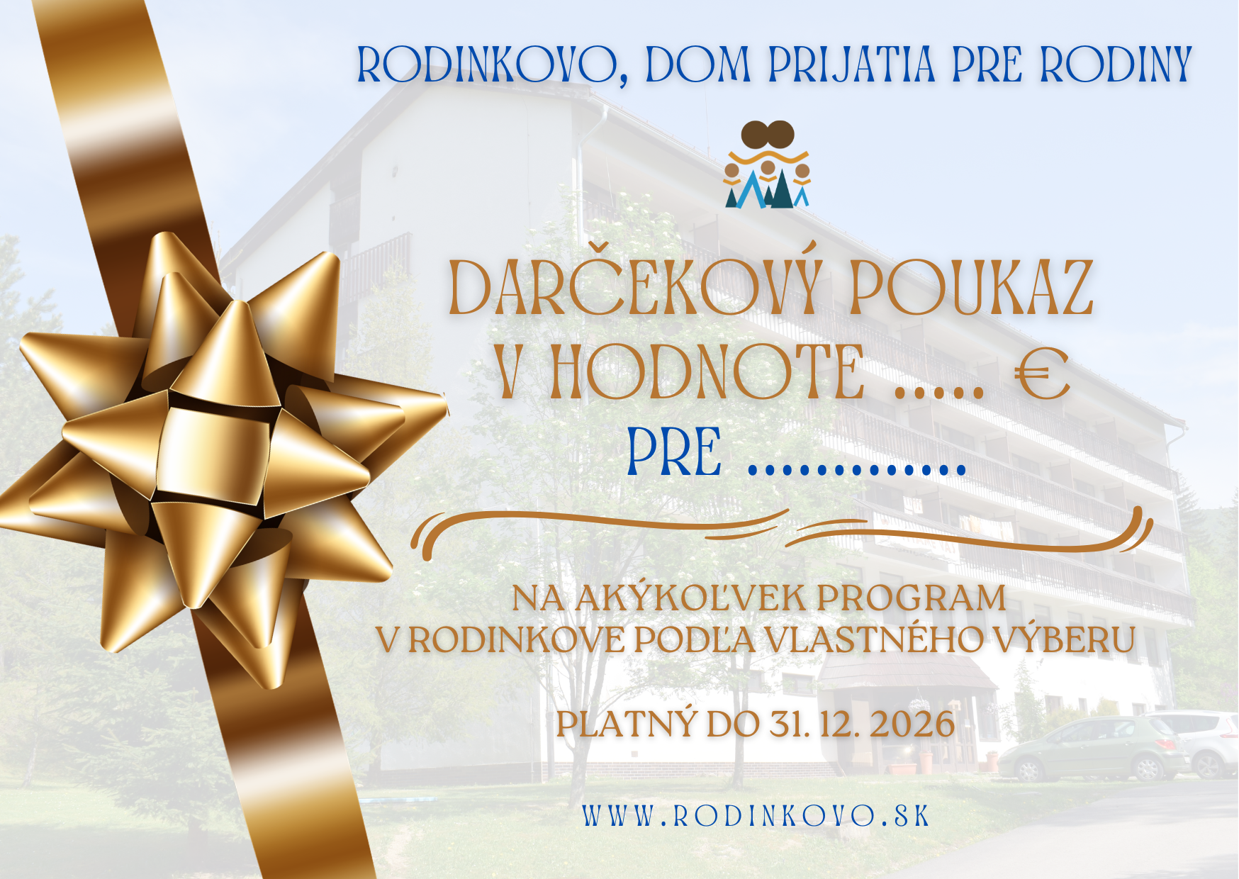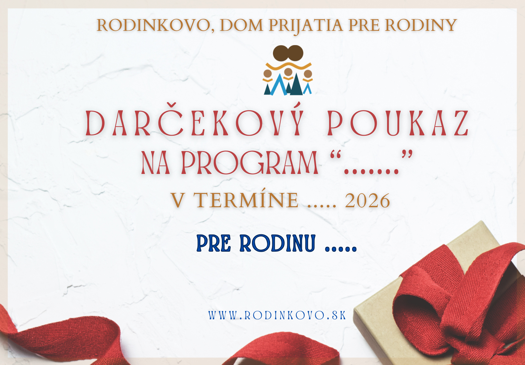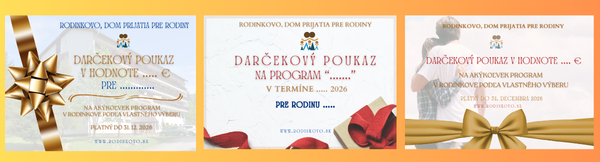 Hľadáte darček, ktorý má skutočný zmysel? Niečo, čo prinesie radosť, oddych aj hlbší zážitok? Darčekové poukazy Rodinkova sú ideálnou voľbou ako darček pre rodiny, manželov aj jednotlivcov, ktorí túžia po zmysluplne strávenom čase.